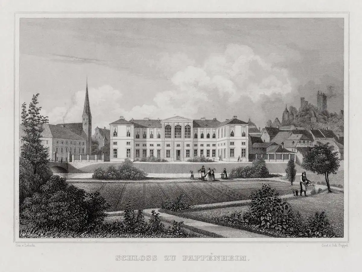 PAPPENHEIM - Schlossansicht. Echter Stahlstich, Poppel um 1850