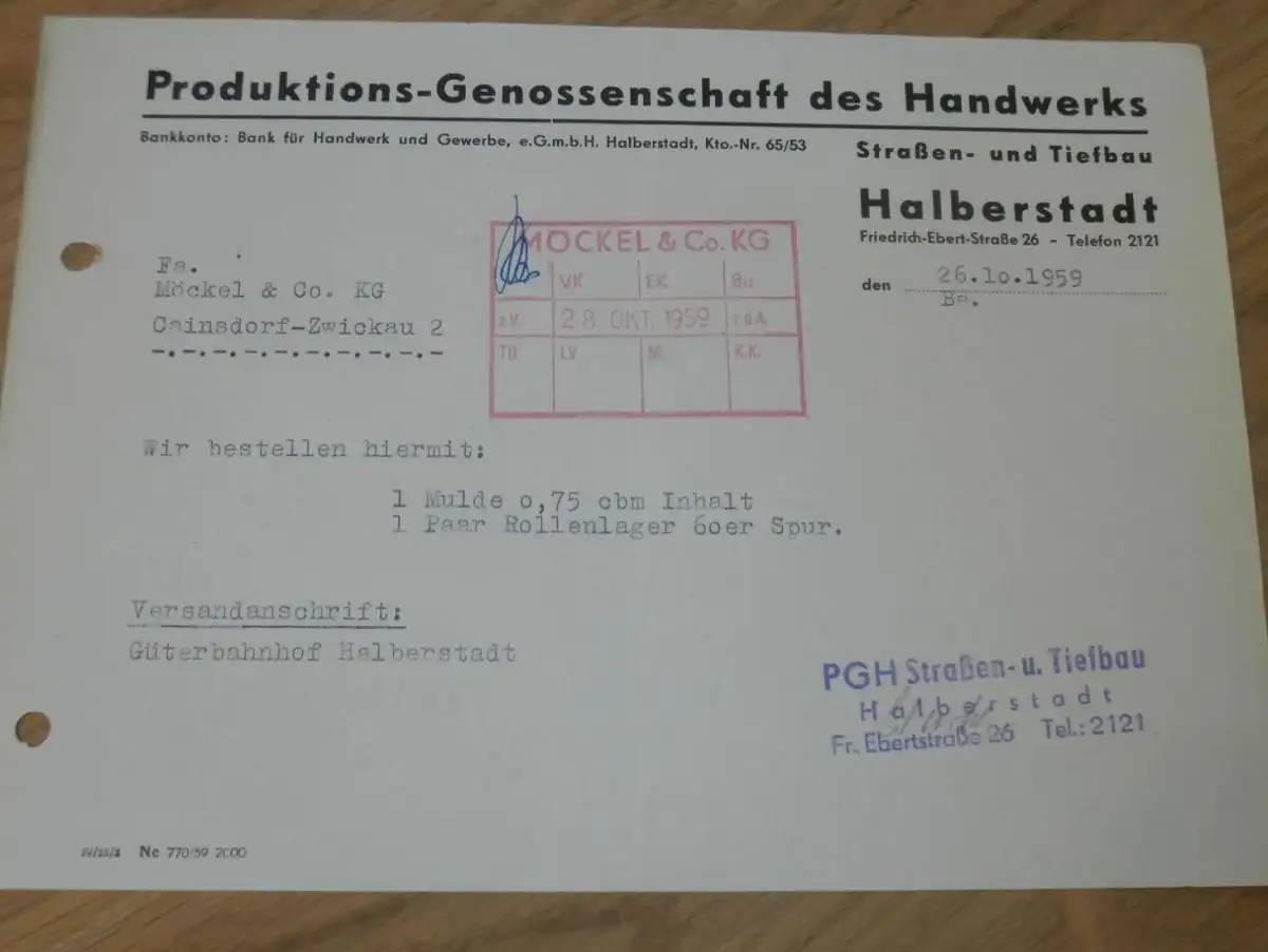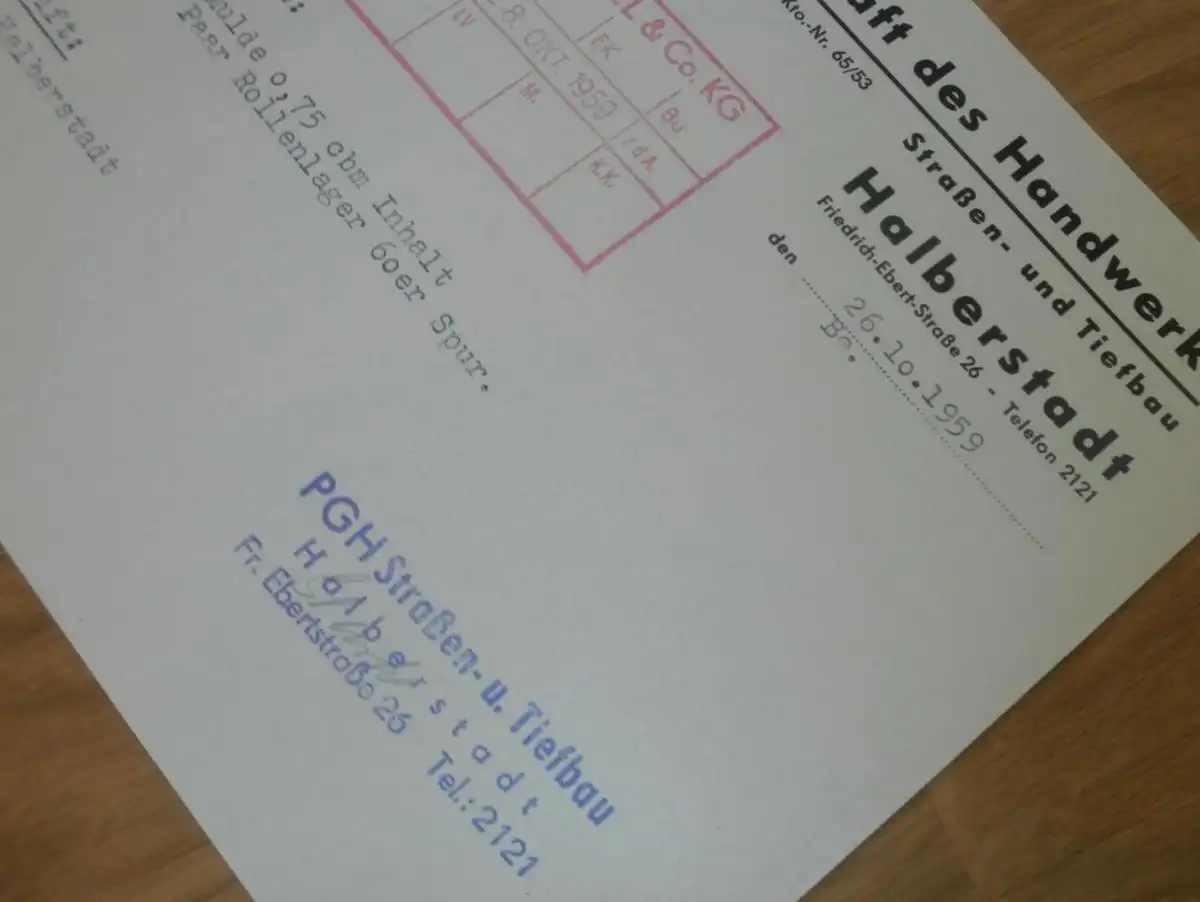 PGH des Handwerk in Halberstadt , 1959 , alte Rechnung , Reklame / Werbung !!