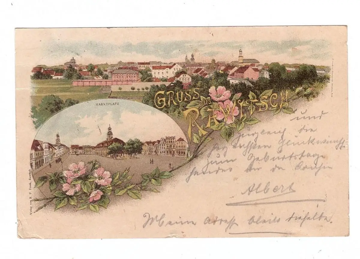PL - 63 -900 RAWICE / RAWITSCH, Lithographie 1897, Stadtansicht mit Synagoge / Judaica
