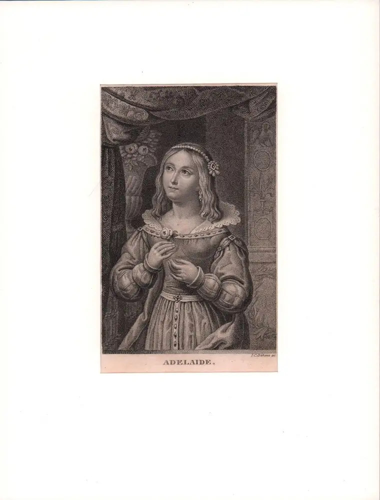 Henriette Adelheid (Adelaide) von Savoyen (1636-1676), durch Heirat mit Ferdinand Maria von Bayern (1636-1679) Kurfürstin Consort von Bayern. - Johann Christian Böhme (geb. 1771), Kupferstecher u. Lithograph in Leipzig