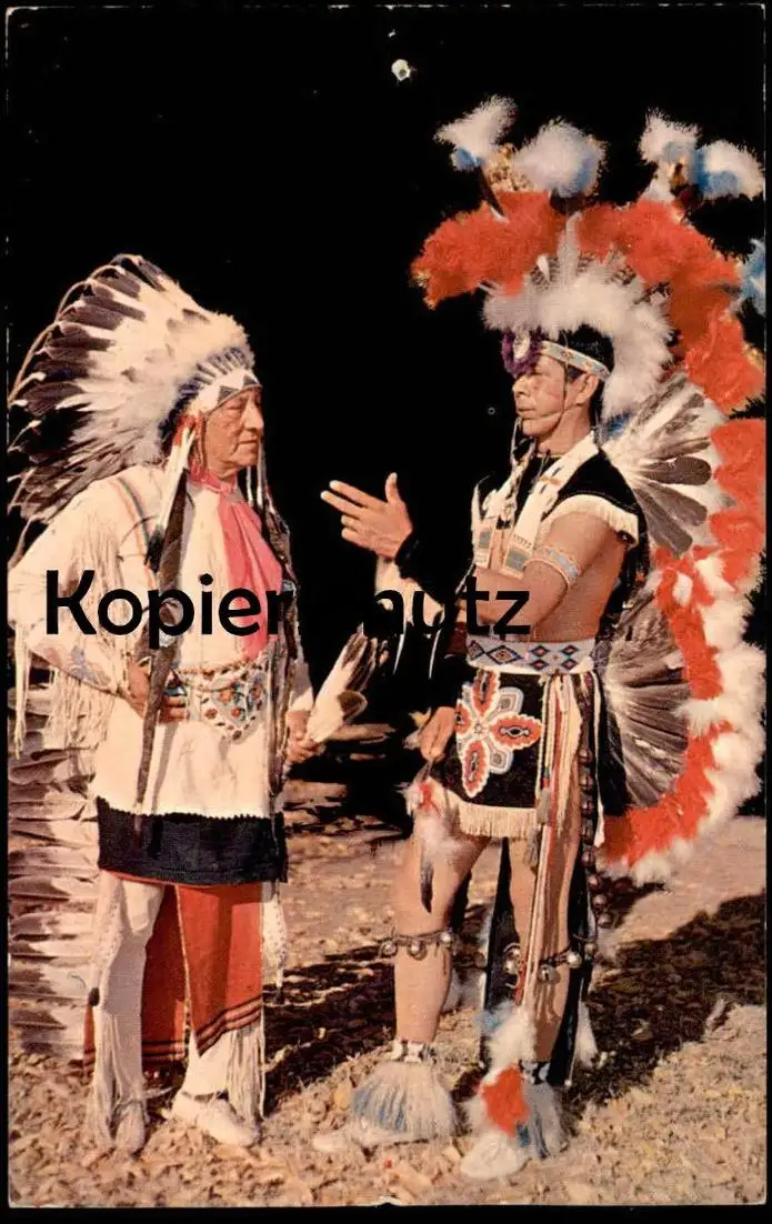 POSTKARTE CHIEF AND SON IN TRIBAL DRESS INDIANS Indianer Indian Indien Kopfschmuck feather headdress postcard cpa AK
