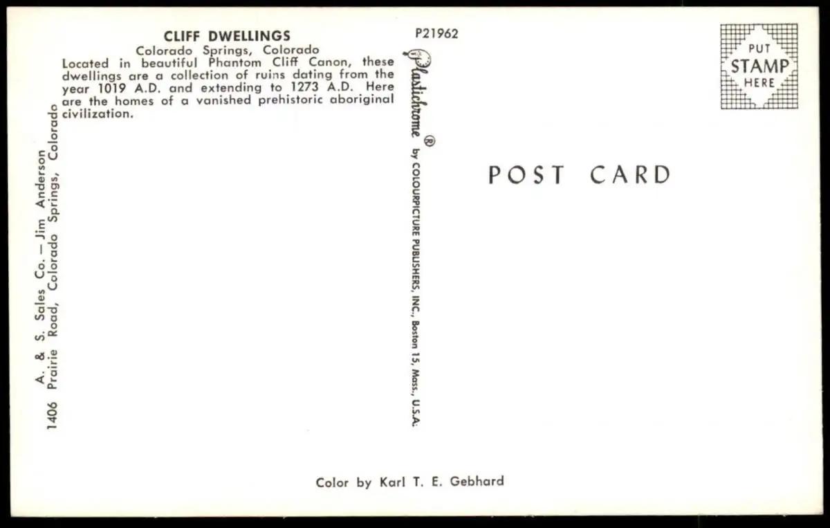 ÄLTERE POSTKARTE CLIFF DWELLINGS COLOARDO SPRINGS LOCATED BEAUTIFUL PHANTOM CLIFF CANON HERE ARE THE HOMES OF A VANISHED PREHISTORIC ABORIGINAL CIVILZATION