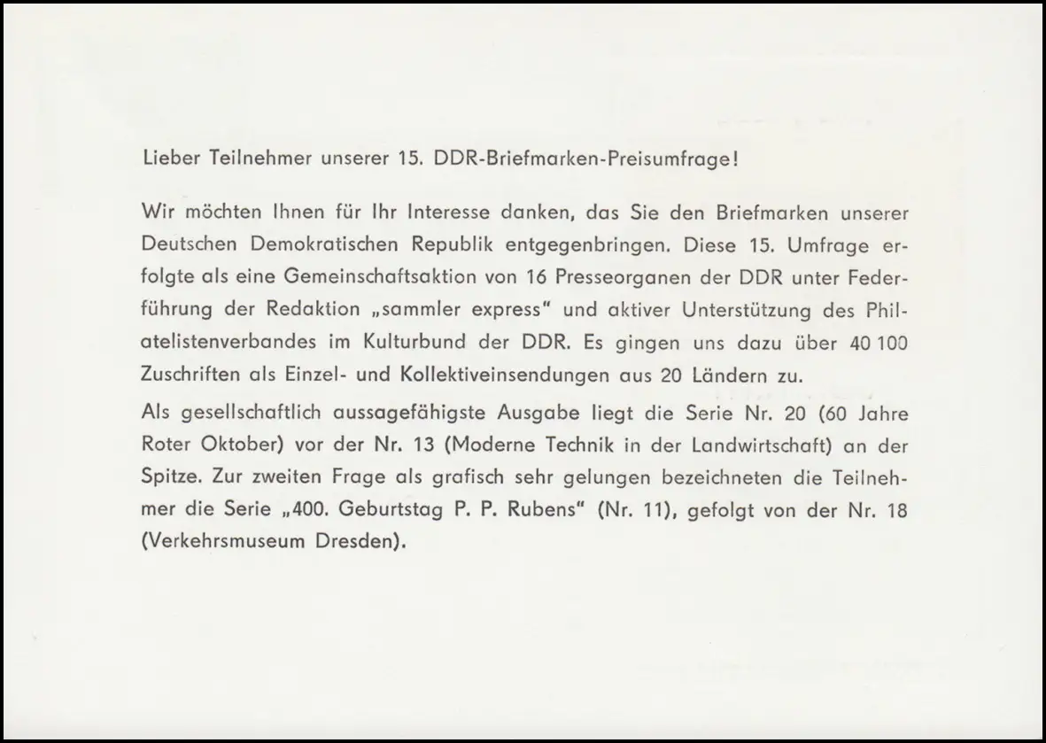 PP 15/86a Goldene Briefmarke 1977 ohne Adresse / Rs. Text, **