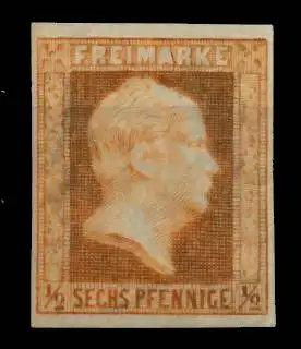 1/2 Sgr / 6 Pfg, König Friedrich Wilhelm IV. Hintergrund gegittert, Wasserzeichen Lorbeerkranz, orange