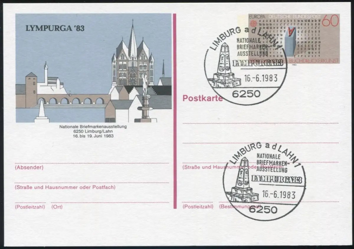 PSo 8 LYMPURGA 1983, ESSt Limburg Postmeilensäule 16.6.83