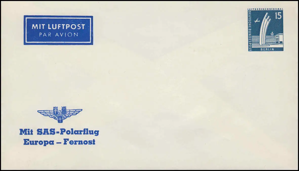PU 17/4 Luftbrückendenkmal 15 Pf SAS-Polarflug Europa-Fernost, ungebraucht