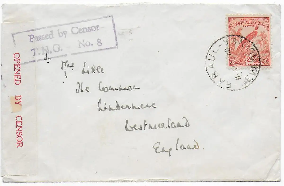 Pabaul with Eastern Australian Steamship (backside) to England with censor 1940