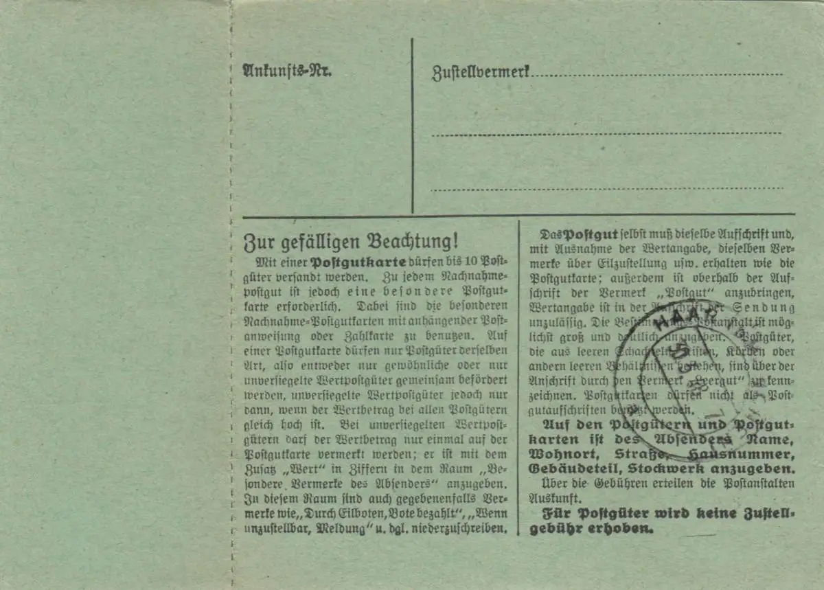 Paketkarte 1948: Aidenbach nach Haar b. München, besonderes Formular
