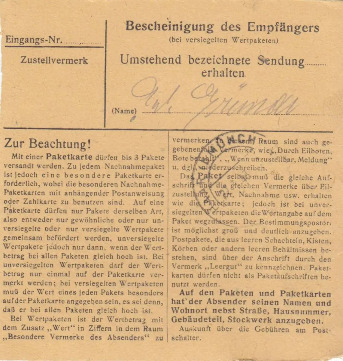 Paketkarte 1948: Schönsee nach Eglfing, Oberpflegerin