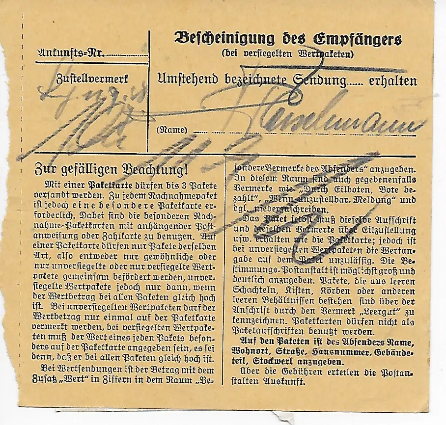 Paketkarte von München nach Haar, 1948, MeF MiNr. 937
