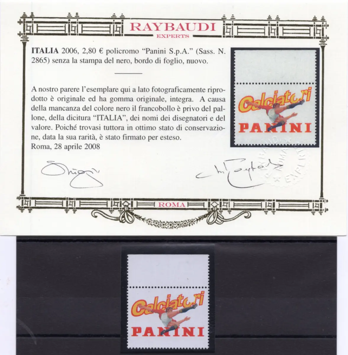 MNH - Vollgummi - - Panini Soccer spa Nr. 2865a wunderschönes Exemplar Bogenrand ohne Schwarzdruck - selten - Zert. Ray. gold - Kat. euro 3.000 Cod.796/182