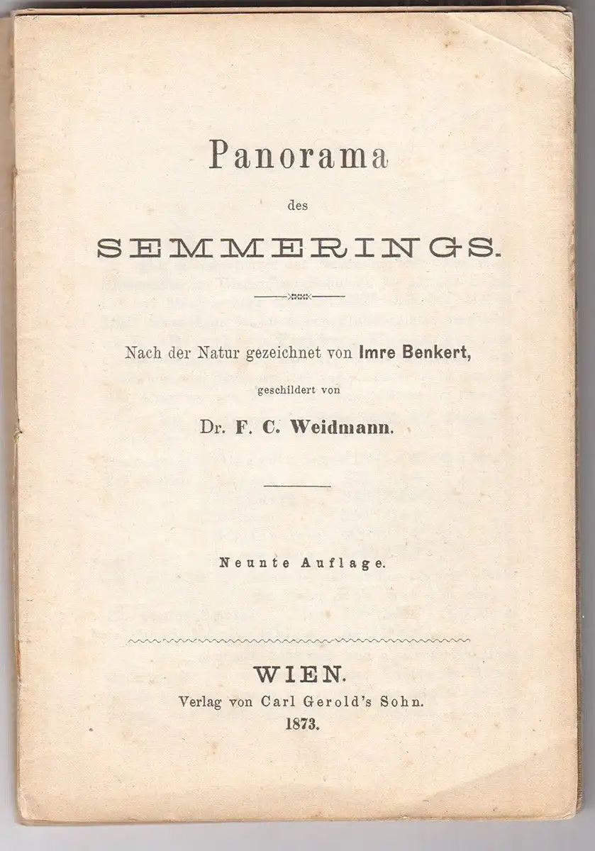 Wien, Gerold`s Sohn 1873. 9. Aufl. 16 S. u. mehrfach gefalt. Panorama-Leporello in farb. Orig.-Lithographie (15, 5 x 295 cm.) OBrosch., in mod. Leinenmappe. 1 kl. Einriss, leicht gebräunt.