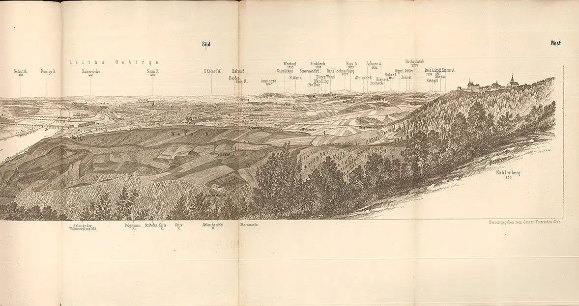 Wien, Vlg. d. Oesterreichischen Touristen-Club [1885]. gr.-8°. 8-teiliges Leporello, 2 Texts. auf den Innendeckeln des Einbandes. OBrosch.