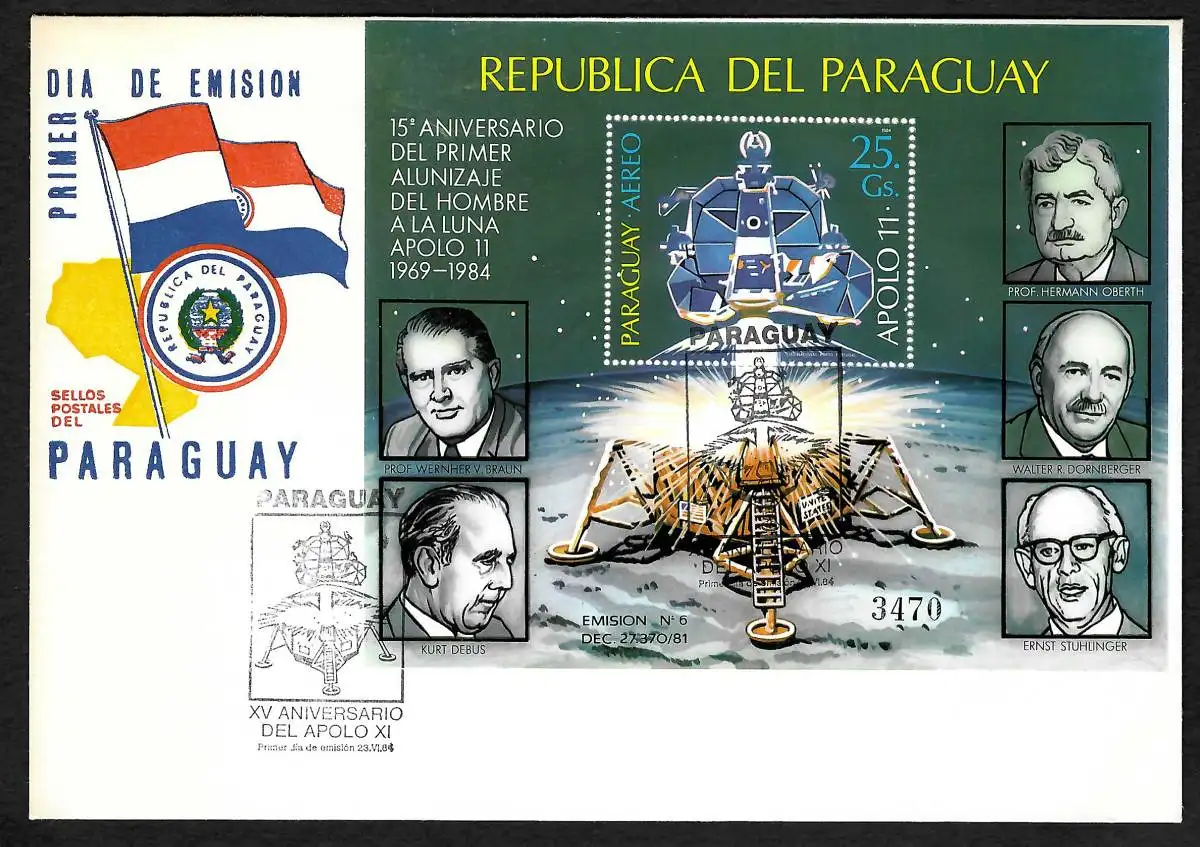 Paraguay: 15. Jahrestag Landung Apollo 11, Block #406, FDC, Bug links unten