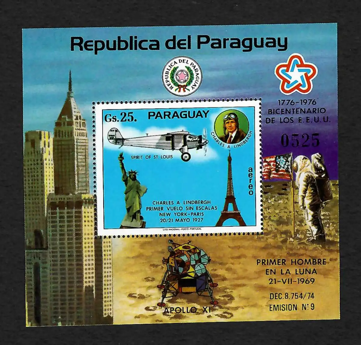 Paraguay: Lindbergh, Armstrong; History of Air traffic #2937, Block #300, mnh