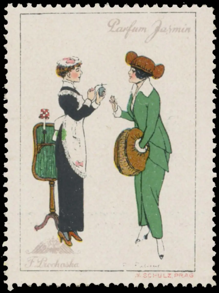 Parfümerie, Kosmetik, Druck: M. Schulz, Prag, Größe/Zustand: 5x4 , guter Zustand, Original alte Reklamemarke die seinerzeit für die Werbung benutzt wurde