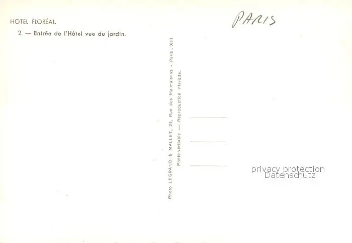 Paris Hotel Floreal Paris postalisch nicht gelaufen nach 1965 Erhaltung siehe scans [LiesaD40] LiesID40