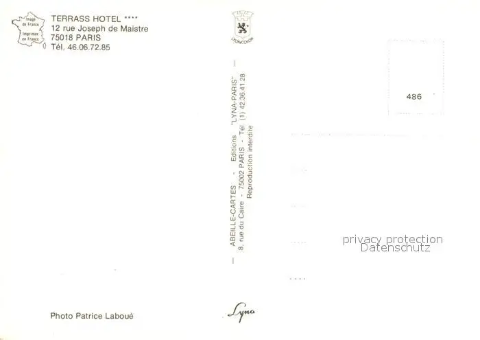 Paris Terrass Hotel Rue Joseph de Maistre Paris postalisch nicht gelaufen nach 1965 Erhaltung siehe scans [WerneD78] WernPID7