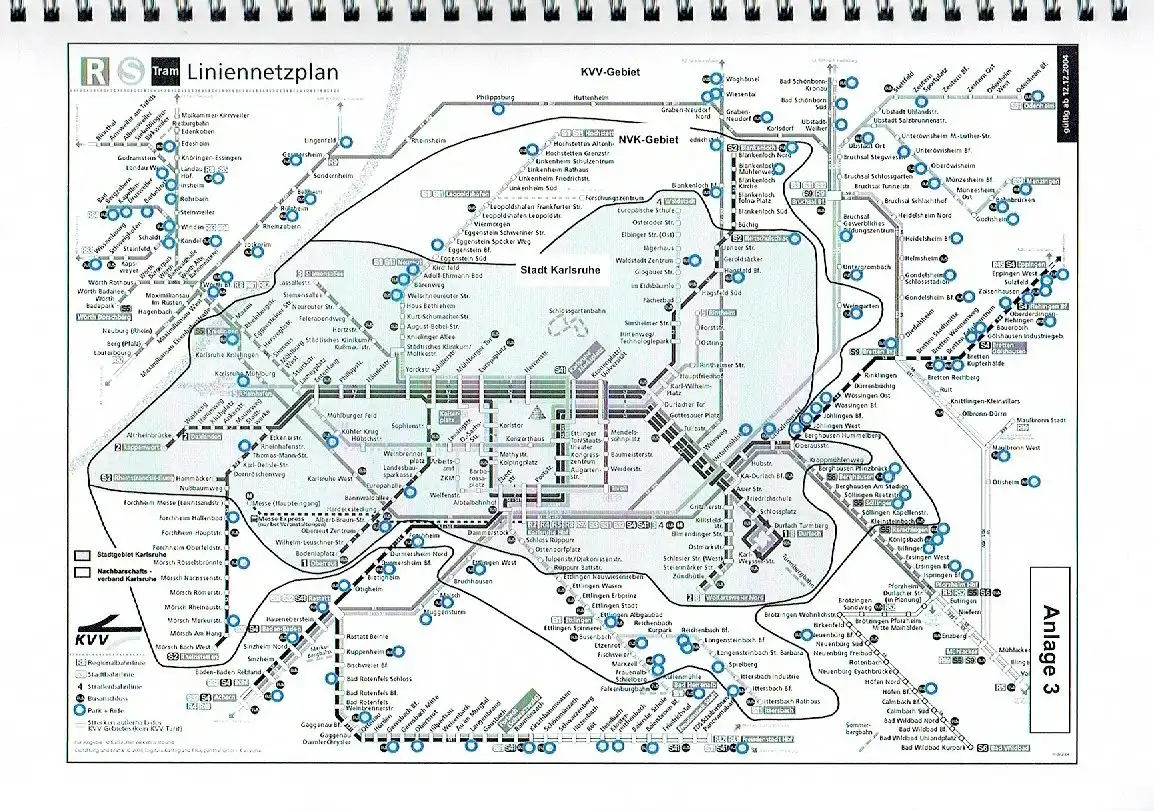 sehr guter Zustand, geringe Gebrauchs- und Alterungsspuren, Wie in vielen europäischen Städten führt auch in Karlsruhe der stetig zunehmende motorisierte Individualverkehr (MIV) immer mehr zu Beeinträchtigungen im Verkehrsfluss. Stauungen, Parkplatzsuchverkehr, Belästigung durch Lärm und Abgase, Erhöhung der Unfallgefahren sind die Folgen. Bisher kann der gute Nahverkehr in Karlsruhe viele dieser oben erwähnte Effekte abpuffern, allein jedoch kann der Öffentliche Personennahverkehr (ÖPNV) diese Probleme nicht lösen. Auch in Deutschland werden verschiedene Möglichkeiten wie z.B. City Maut oder Road Pricing Systeme diskutiert, in der Hoffnung, die Verkehrsmengen im Stadtgebiet verträglicher abwickeln zu können. Durch neue EU-Verordnungen mit strengen Immissionsgrenzwerten für Stickstoffdioxid und Feinstaub sind bundesdeutsche Großstädte nun aufgefordert, einen Luftreinhalteplan zu erstellen, der die Einhaltung der Grenzwerte ermöglicht und nachhaltig sichert. Daher wird dies für das Gebiet des KVV geprüft. - Anlagen - Auszug Luftreinhalteplan 2006, Regierungspräsidium Karlsruhe - Stadtplan der Stadt Karlsruhe mit eingetragenen P+R-Plätzen - Liniennetzplan KVV - Plan Untersuchung 1972, Stadt Karlsruhe - Plan Generalverkehrsplan 1982, Stadt Karlsruhe - Plan Untersuchung 1991, Hamburg-Consult - Tabelle Ortsbesichtigung P&R-Plätze 2005/2006, kartoniert im Ringbinder, ca. 21 x 29,5, 23 Seiten mit zahlreichen Bildern und 7 Anlagen (= weitere 16 Seiten)