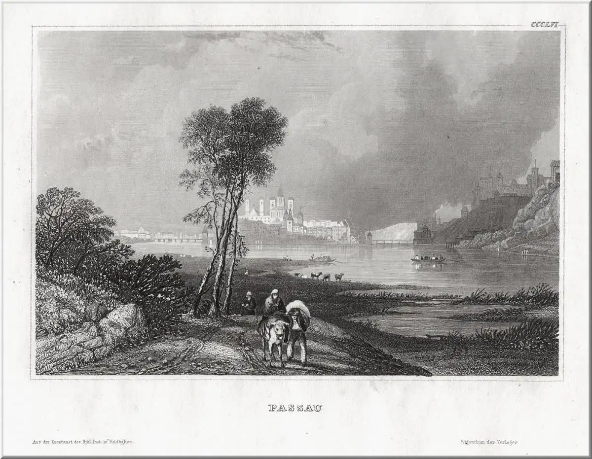 Passau - Totalansicht. Echter Stahlstich, BI um 1840