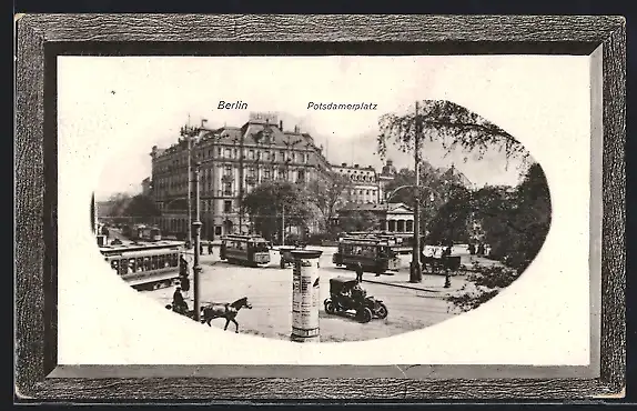 Passepartout-AK Berlin, Potsdamerplatz mit Strassenbahnen