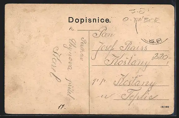 alte Ansichtskarte, gelaufen, Briefmarke entfernt, Abriebspur re., guter Zustand