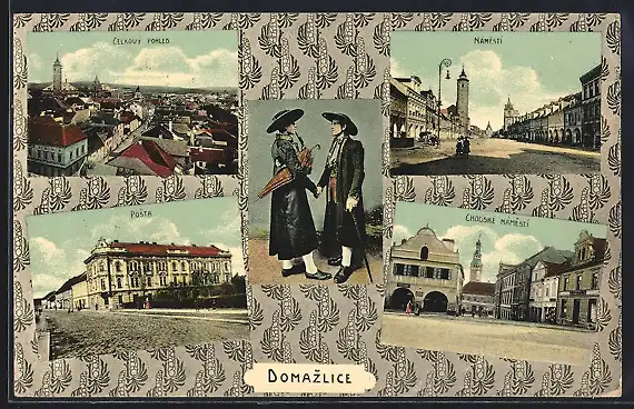 Passepartout-AK Domazlice, Celkovy pohled, Posta, Namesti