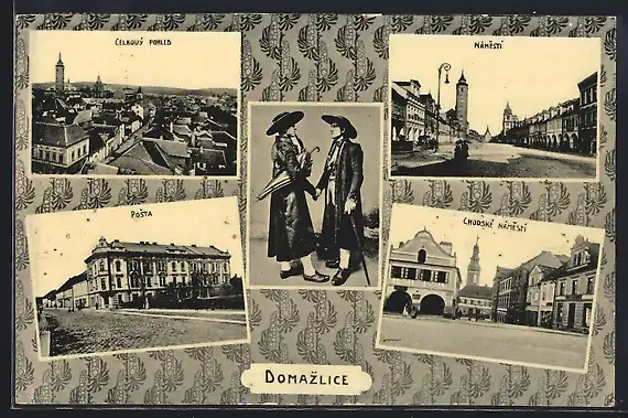 Passepartout-AK Domazlice, Celkovy pohled, Posta, Namesti