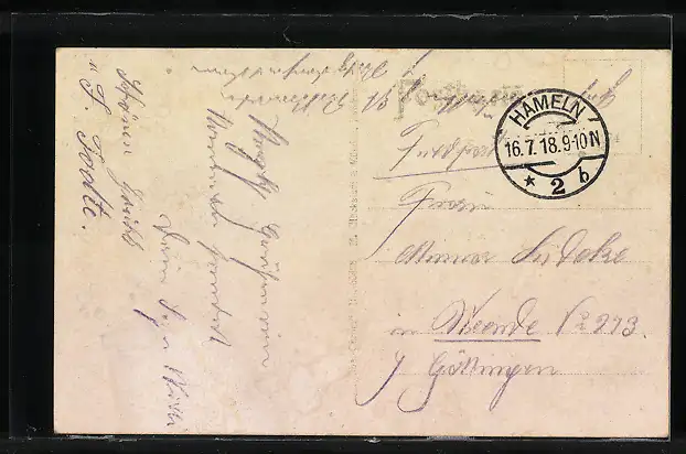 alte Ansichtskarte, gelaufen 1918, Abriebspur unten re., guter Zustand