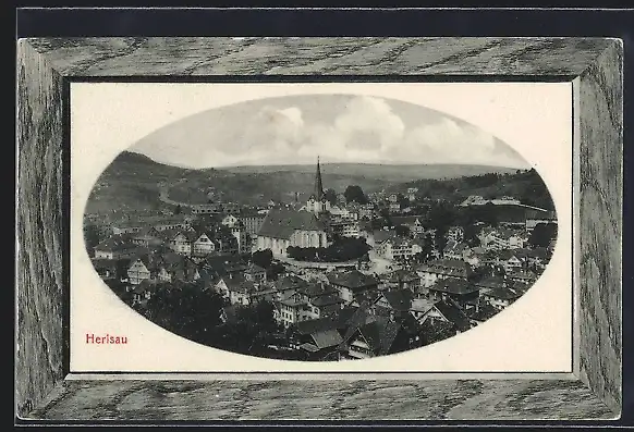 Passepartout-AK Herisau, Ortsansicht von oben