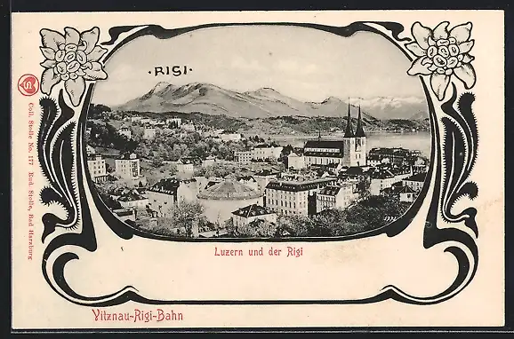 Passepartout-AK Luzern, Ortsansicht mit Kirche, Rigi
