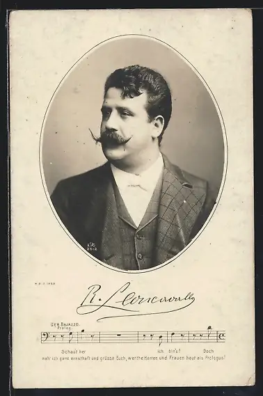 Passepartout-AK R. Leoncavallo, Portrait, Notenzeile