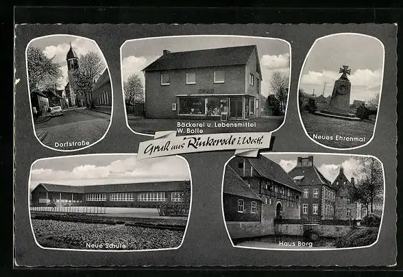 Passepartout-AK Rinkerode /Westf., Bäckerei W. Bolle, Haus Borg, Neues Ehrenmal