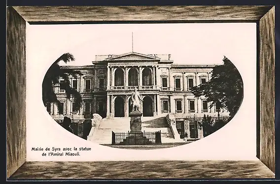 Passepartout-AK Syra, Mairie avec la statue de l`Amiral Miaouli