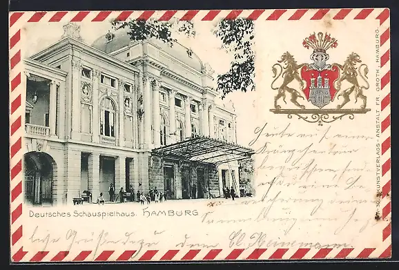 Passepartout-Lithographie Hamburg-St.Georg, Deutsches Schauspielhaus, Wappen mit Ritterhelm