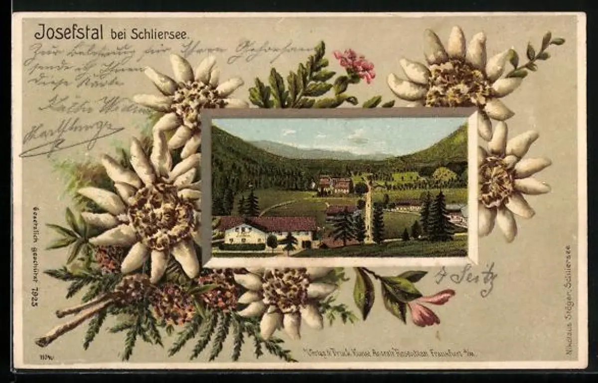 Passepartout-Lithographie Josefstal, Panorama der Ortschaft