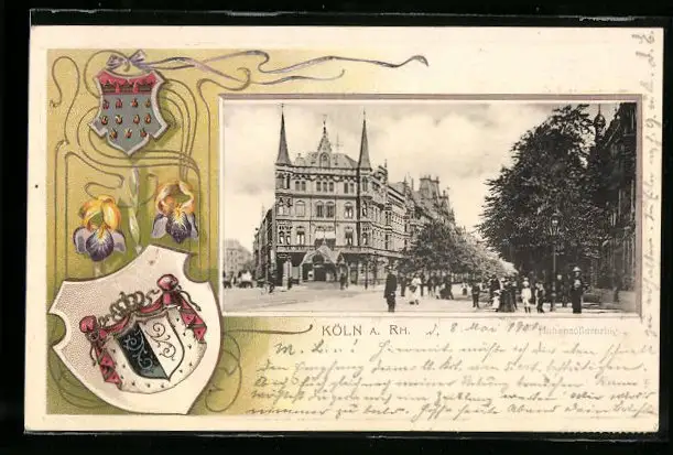 Passepartout-Lithographie Köln-Neustadt, Partie am Hohenzollernring, Wappen