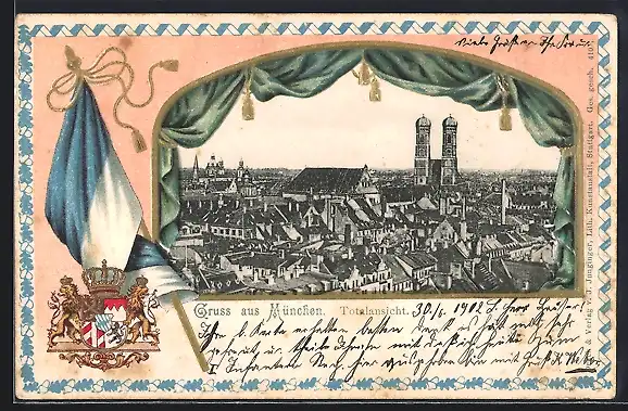 Passepartout-Lithographie München, Totalansicht mit Frauenkirche