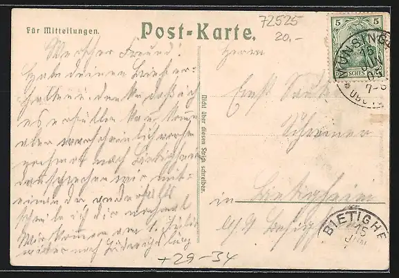 gelaufen 1905, Eckknick li. unten, guter Zustand