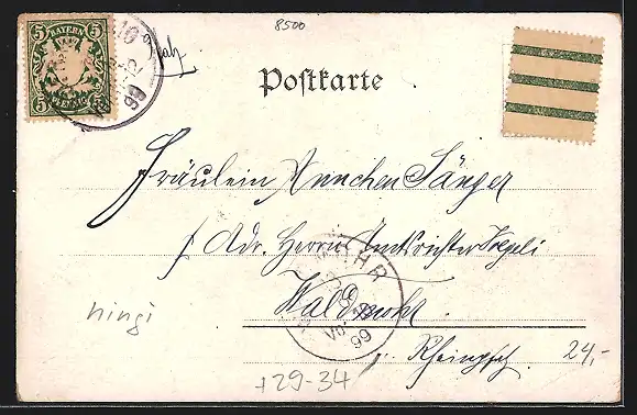 gelaufen 1899, Eckknick li. unten, guter Zustand