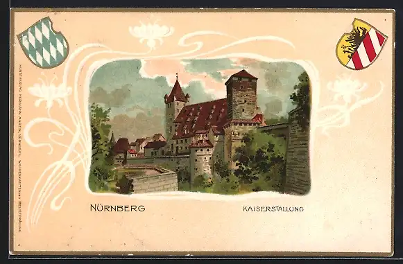 Passepartout-Lithographie Nürnberg, Kaiserstallung, Wappen