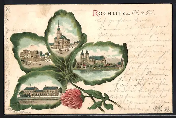 Passepartout-Lithographie Rochlitz, Kgl. Amtshauptmannschaft im Kleeblatt
