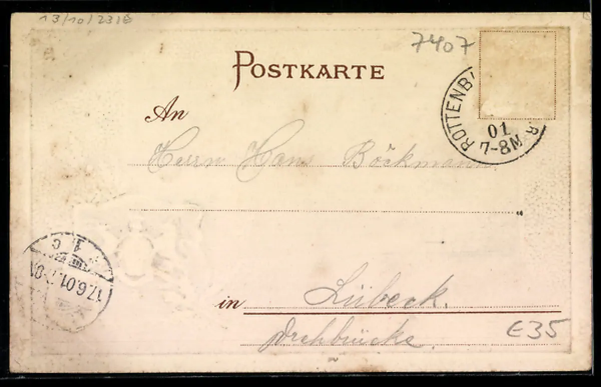 gelaufen 1901, Briefmarke entfernt, guter Zustand