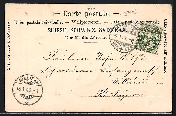 gelaufen 1905, Eckknick li. oben, Bugspur re. oben, guter Zustand