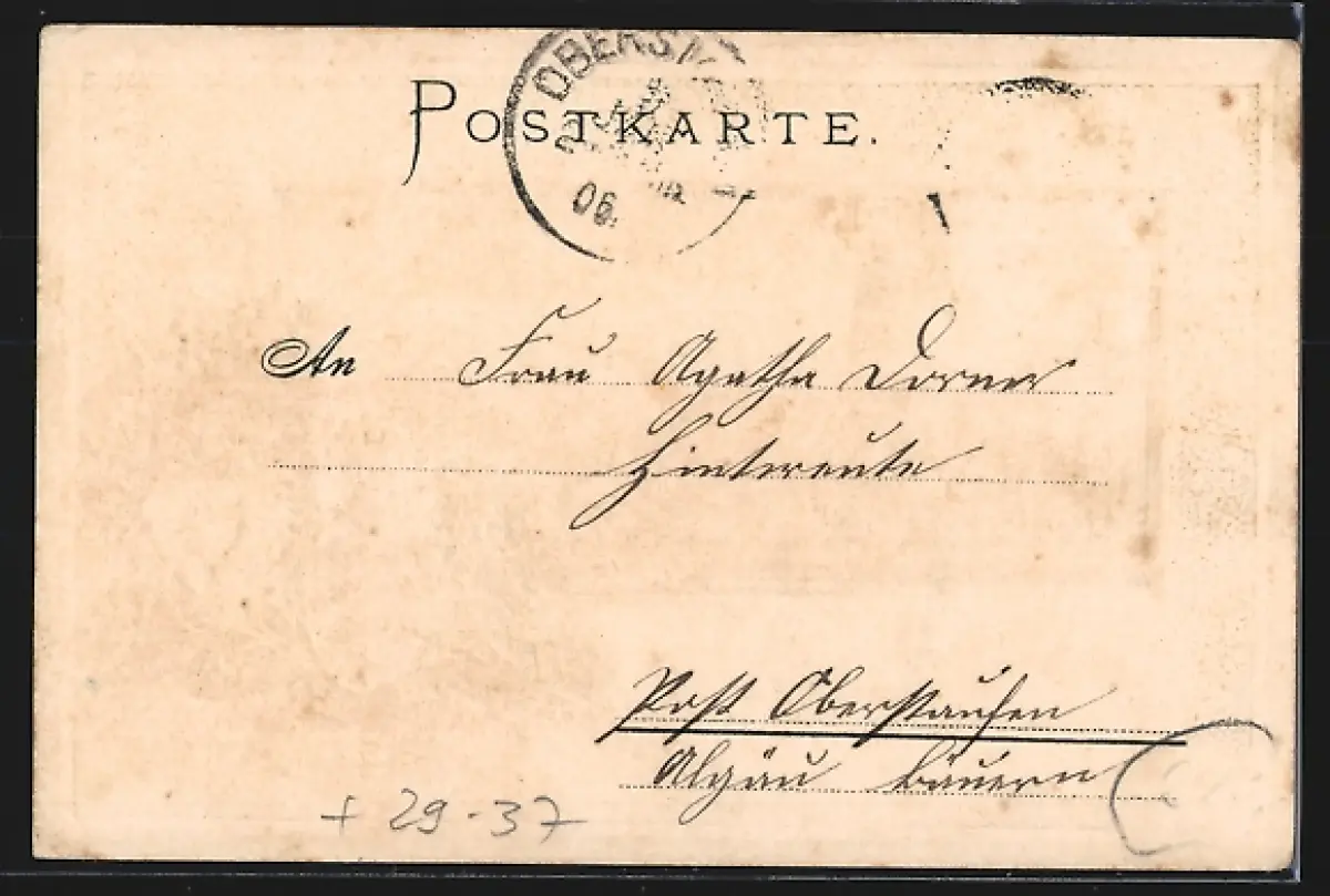 gelaufen 1906, Briefmarke entfernt, rückseitig Oberflächenschaden, Eckknick oben li. u. unten re., guter Zustand