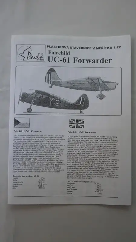Pavla Models Fairchild UC-61 Forwarder-1:72-72029-Bauteile versiegelt-Modellflieger-OVP-1007