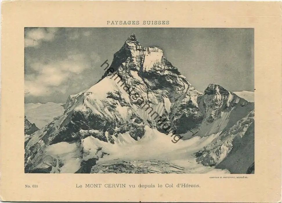 Paysages Suisses - Le Mont Cervin vu depuis le Col d\' Hérens - Edition Comptoir de Phototypie Neuchatel No. 618 - keine Ansichtskarte 13cm x 18cm Gewicht 14g - Rückseite blank (EP6516)