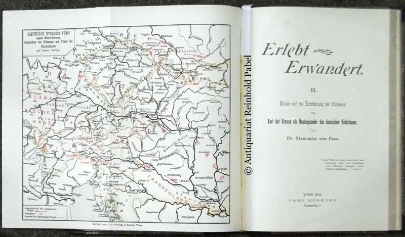 Bibl. Notiz aVuT., eine Bll. mäßig stockfl. - [1]: Die Rossköpfe auf deutschen Bauernhäusern. Aus Titians Heimat. Das fränkische Bauernhaus. Ein Stück praktischen Socialismus: Besuch in Herrenhut. Von der deutsch-italienischen Sprachgrenze. St. Leonhard in den Ostalpen. Antike Technik und altdeutsche Holzcultur / [2]: Haine und Heiligthümer / [3]: Blicke auf die Entstehung der Ostmark und Karl der Grosse als Neubegründer des deutschen Volksthums. - Ein letzter Teil 4: "Aus deutschen Gauen und vom deutschen Volke" erschien postum 1914 im Verlag Duncker, Weimar. - Zu dem Industriellen, Finanzwissenschaftler u. Politiker (Ernst) Alexander Peez (1863-1912) siehe NDB 20, S. 159 f