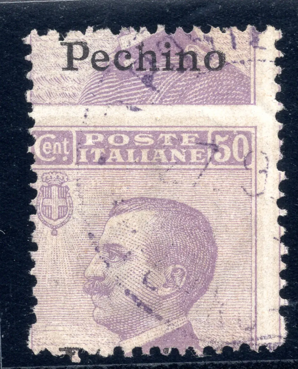 Peking - Michetti Cent. 50 stark verschobene Zähne gebraucht - Peking - Michetti Cent. 50 n. 14b Horizontalverzahnung stark nach oben verschoben - Selten - Kat. 675 Code 939/11