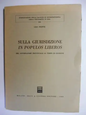 Peppe *, Leo: SULLA GIURISDIZIONE IN POPULOS LIBEROS DEL GOVERNATORE PROVINCIALE AL TEMPO DI CICERONE. + AUTOGRAPH *.